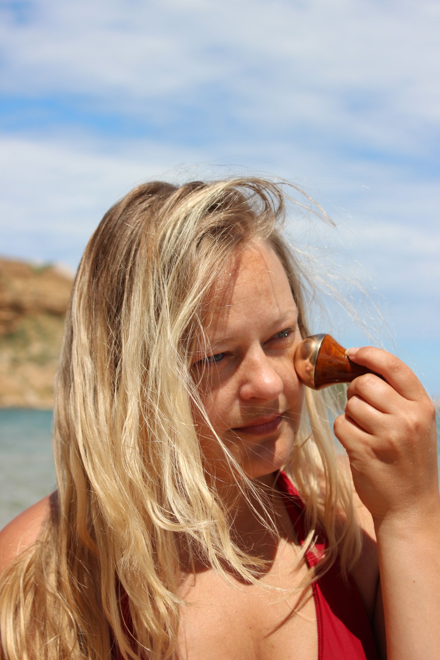 Unit price perAn authentic Ayurvedic facial tool with a kansa (copper–tin bronze) dome and ergonomic hardwood handle. Designed for precise work on facial marma, especially the under-eye, brow, temples and nasolabial area. Regular use supports micro-circulation, gentle lymphatic drainage, and a calm, cool pitta—leaving the skin relaxed and refreshed.