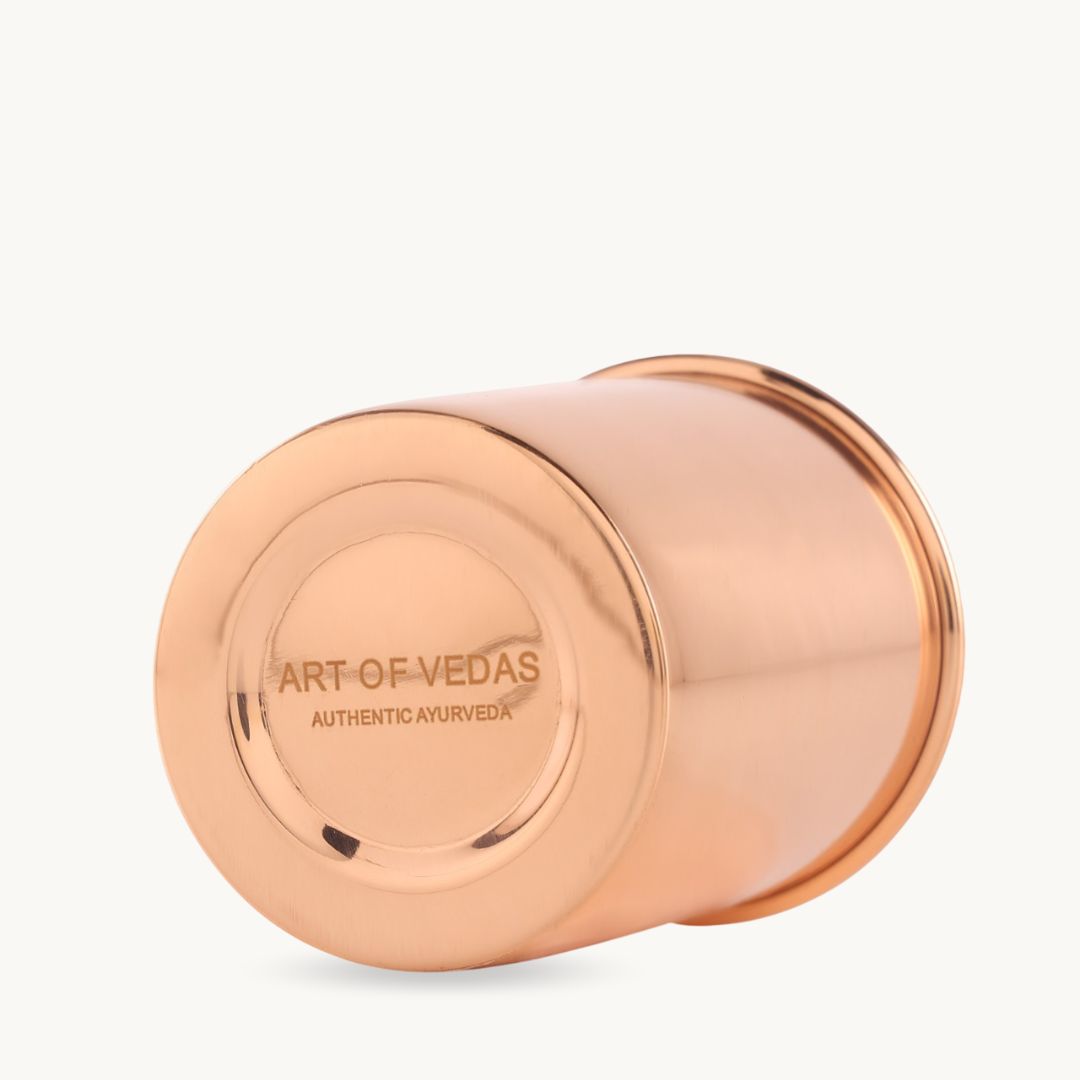 To enjoy the full benefits of the Art of Vedas Pure Copper Ayurvedic Health Glass, start by rinsing the glass with water before first use. Fill the glass with water and let it sit overnight, ideally for about 6-8 hours, to allow the copper to gently leach into the water and ionize it. Drink this enriched water on an empty stomach each morning. After use, rinse the glass with warm water, avoiding harsh soaps as they can tarnish the copper. Dry the glass thoroughly with a soft cloth to prevent oxidation. With proper care, your copper glass will maintain its beauty and functionality for years to come.