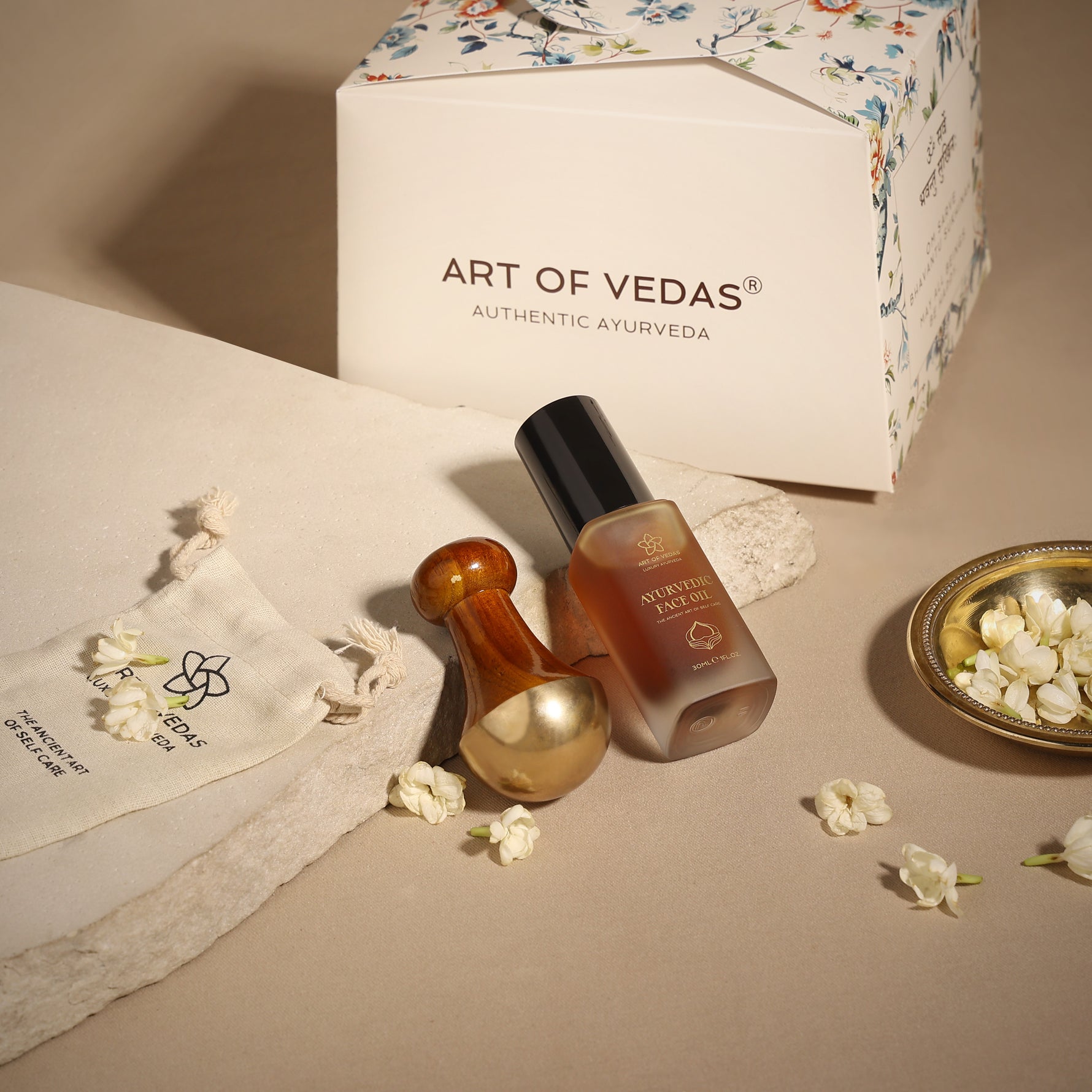 Unit price perReveal the essence of true Ayurvedic beauty with our Ayurvedic Beauty Ritual Kit, a blend of ancient tradition and mindful self-care. This thoughtfully curated set features our premium Ayurvedic Face Oil and a handcrafted Mini Kansa Wand, inspired by centuries old Ayurvedic practices.